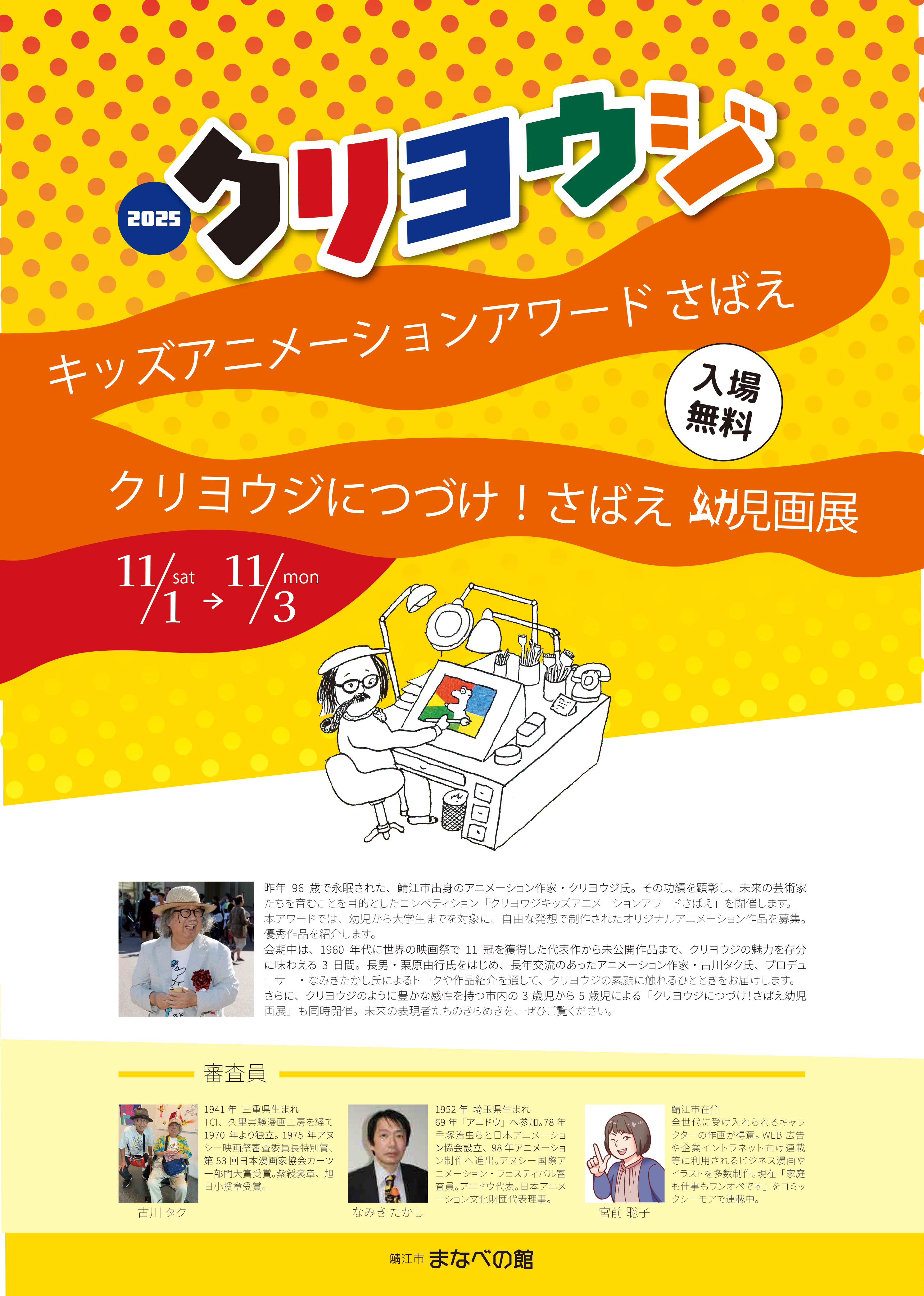 「さばえ 幼児画展」と「クリヨウジキッズアニメーションアワードさばえ」が無事に終了し、ホッと一息ついています。今回、受賞された子どもたち、本当におめでとうございます!彼らの素晴らしい才能と努力が形になった結果がこの素晴らしい受賞に繋がったことを、心から嬉しく思います。これからも夢を大きく持ち、さらなる成長を遂げていくことを応援しています。